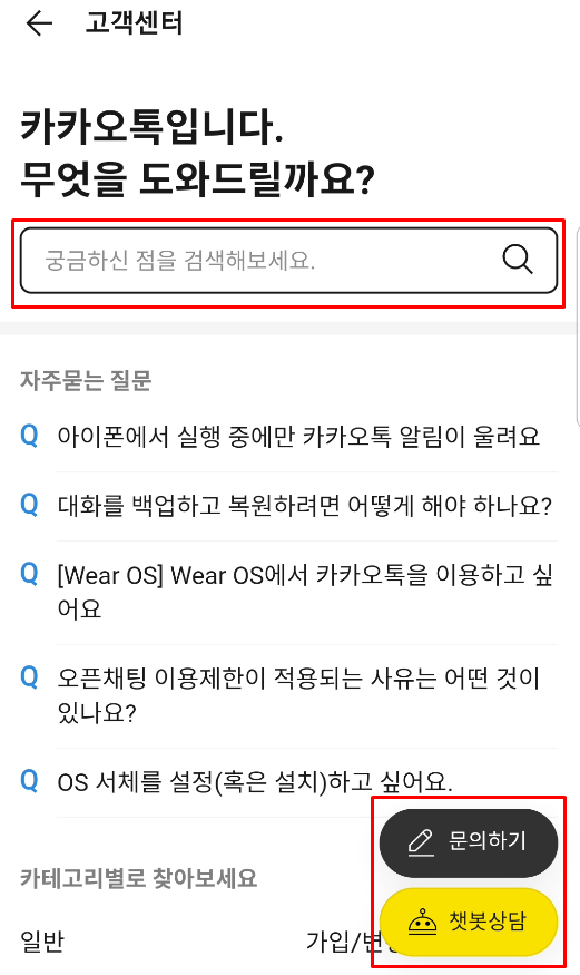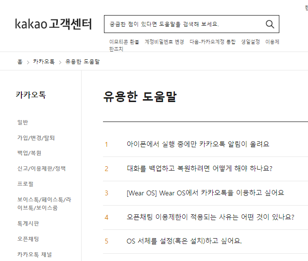 ① 카카오 고객센터 검색 기능